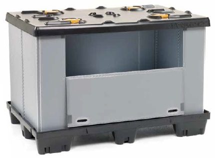 Parmi sa gamme de caisses palettes, Origami Packaging vous propose des caisses palettes en plastique repliable et légère. La particularité de ces conteneurs est quelles sont constituées d’une palette plastique légère, d’une ceinture en polypropylène alvéolaire repliable et d’un couvercle. Les parois latérales, le fond et le couvercle sont pleins.