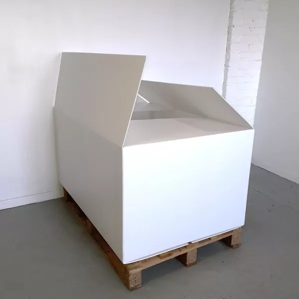 Ces caisses-palettes sont constituées d’une palette plastique légère, d’une ceinture en polypropylène alvéolaire repliable et d’un couvercle.
